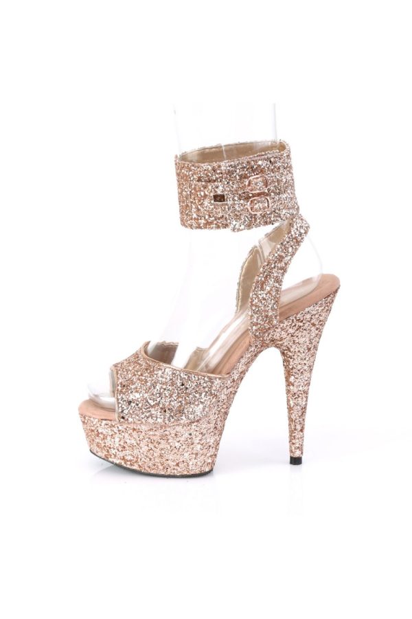 6″” (152mm) Heel, 1 3/4″” (45mm) Platform Glitter Ankle Strap Sandal Featuring Wide Ankle Band w/ Dual Buckle Straps