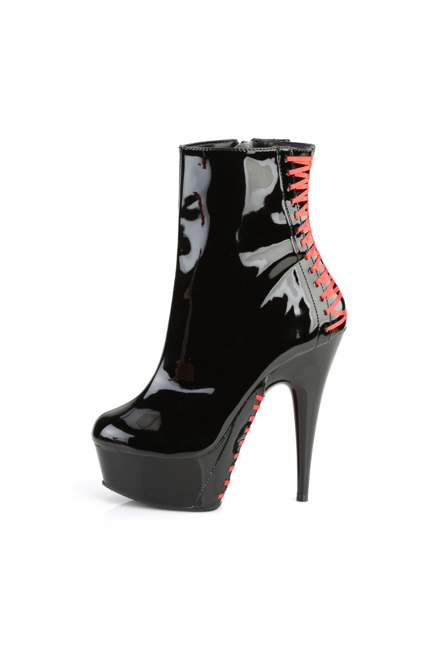 6″” (15.2cm) Stiletto Heel, 1 3/4″” (4.5cm) Platform Corset Style Ankle Boot, Inner Side Zip Closure