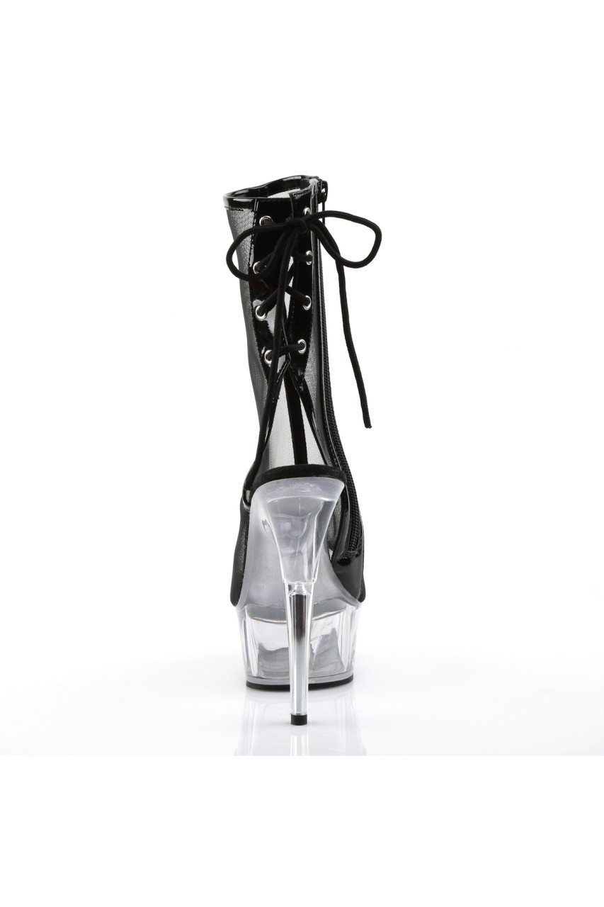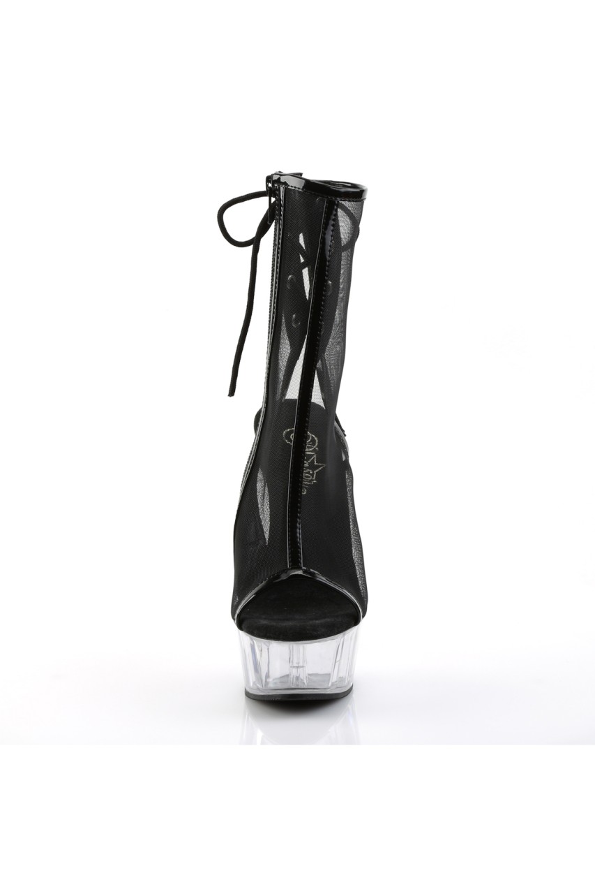 6″” (15.2cm) Stiletto Heel, 1 3/4″” (4.5cm) Platform Open Toe/Heel Back Lace- Up Mesh Ankle Boot, Inner Side Zip Closure