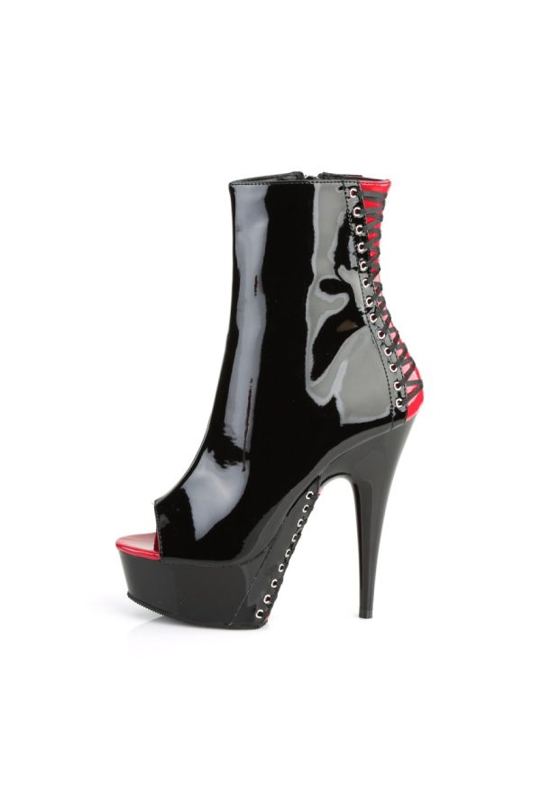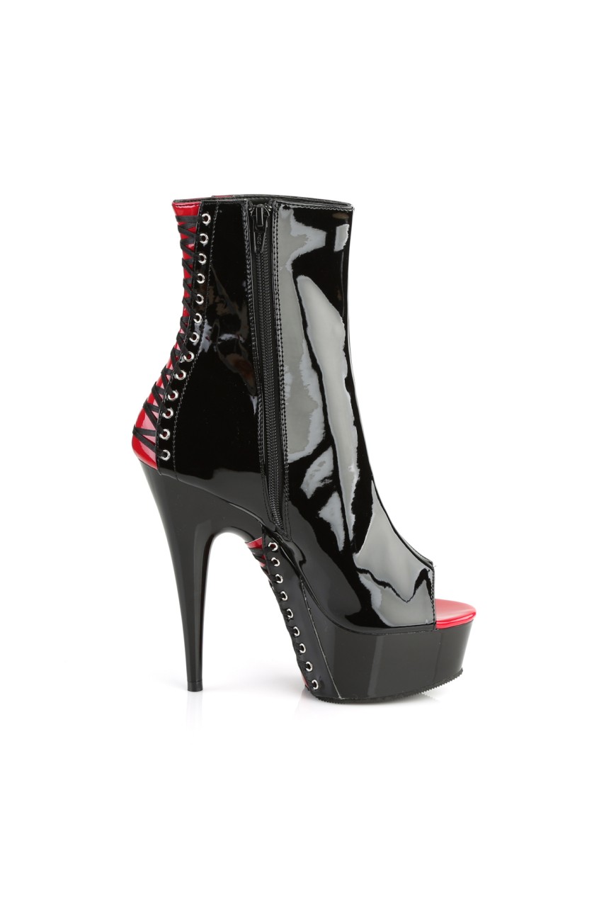 6″” (15.2cm) Stiletto Heel, 1 3/4″” (4.5cm) Platform Peep Toe Corset Style Ankle Boot, Inner Side Zip Closure