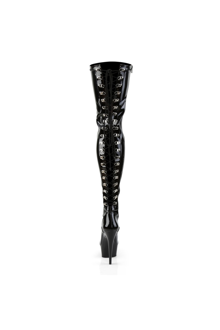 6″” (152mm) Heel, 1 3/4″” (45mm) Platform D-Ring Lace-Up Back Stretch Thigh High Boot, Full-Length Inner Side Zip Closure