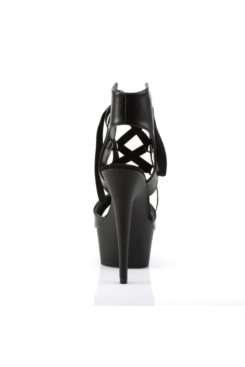 6″” (15.2cm) Stiletto Heel, 1 3/4″” (4.5cm) Platform Open Heel/Toe Front Lace-Up Bootie