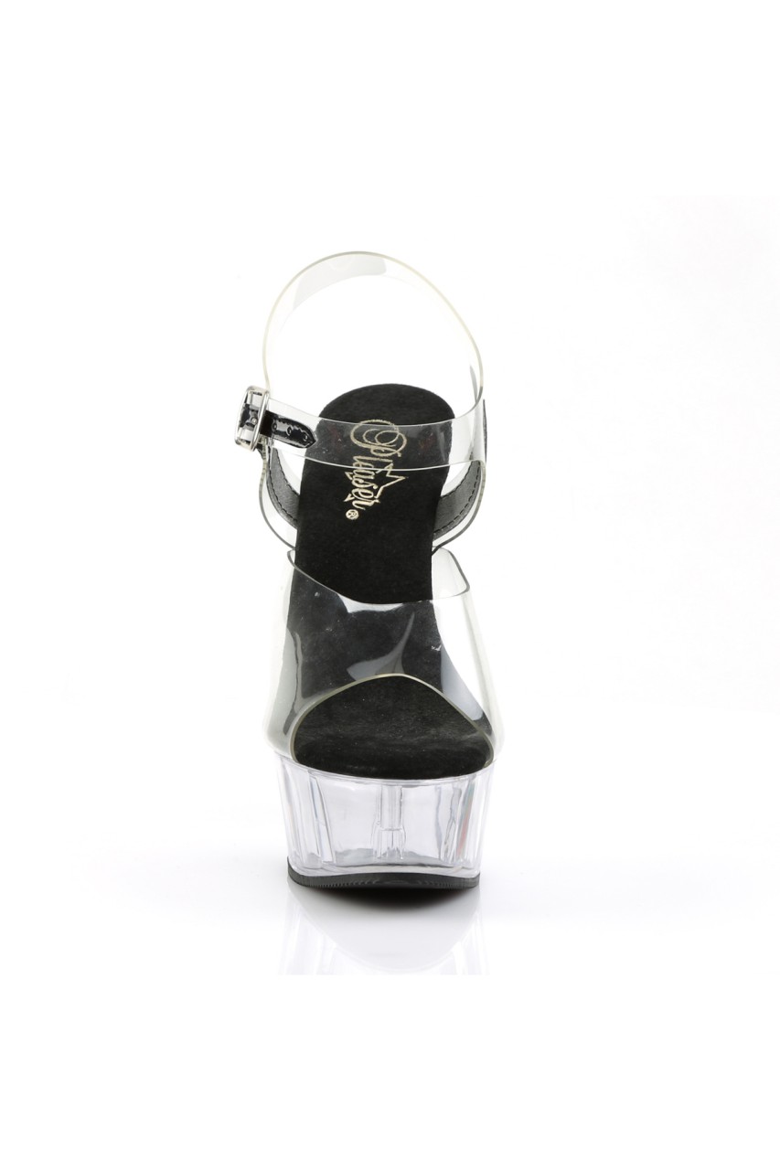6″” (15.2cm) Stiletto Heel, 1 3/4″” (4.5cm) Platform Ankle Strap Peep Toe Slide