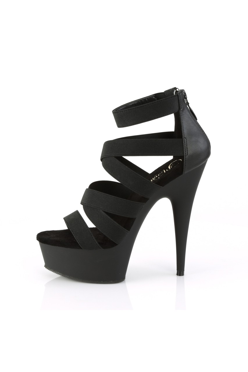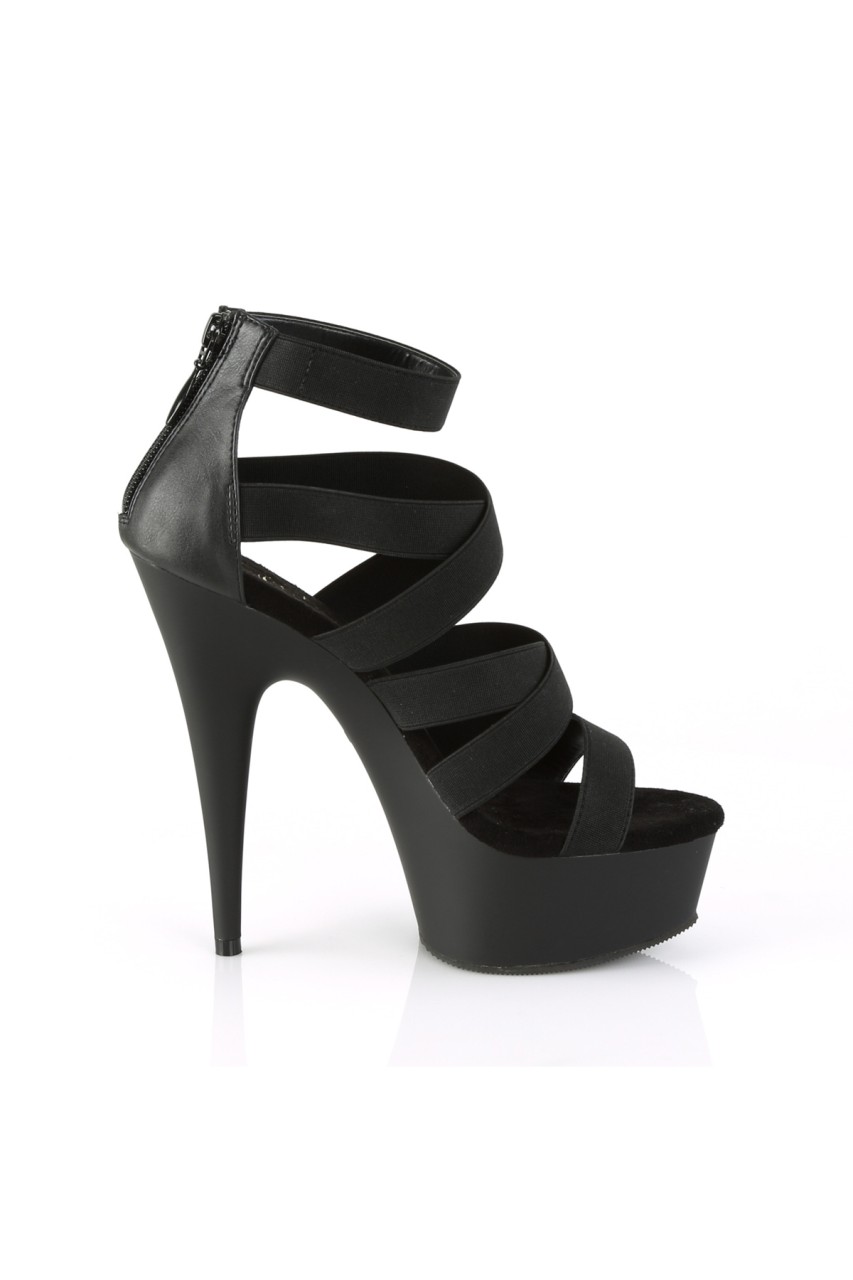 6″” (152mm) Heel, 1 3/4″”(45mm) Platform Double Criss Cross Sandal with Elastic Straps, Back Zip Closure