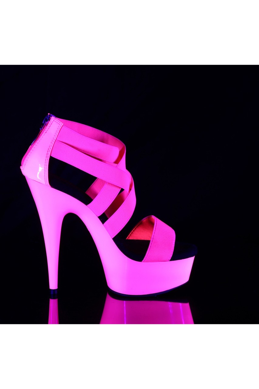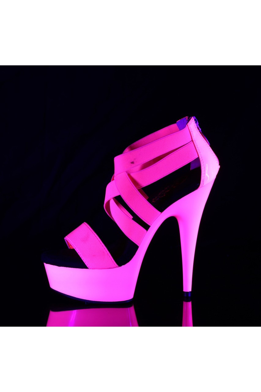 6″” (152mm) Heel, 1 3/4″” (45mm) Platform Criss Cross Sandal Featuring Entire Upper and Platform Bottom UV Blacklight Reactive