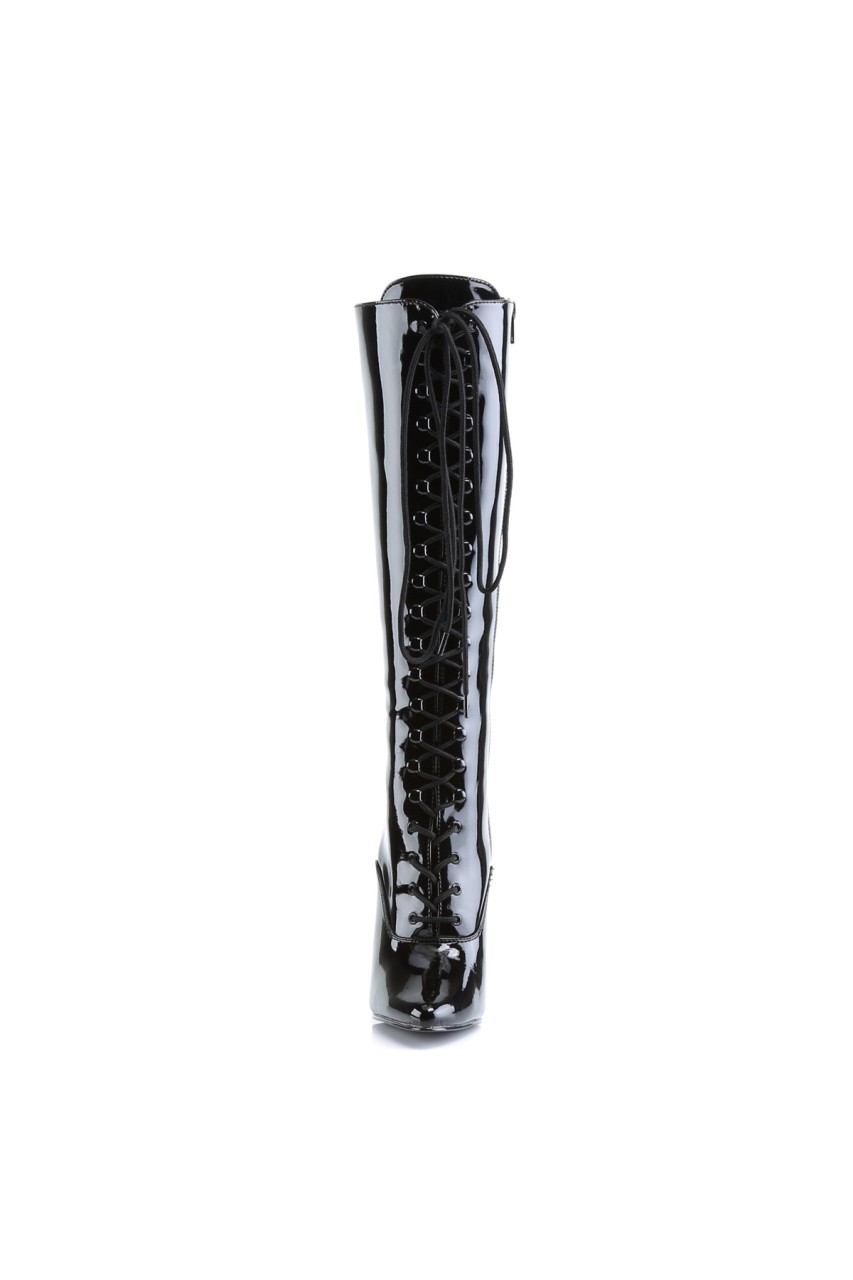 6″” (15.2cm) Stiletto Heel Lace Up Knee Boot, Full Inner Side Zip Closure
