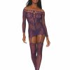 • Fishnet and decorative scalloped lace garter dress with attached fishnet stockings