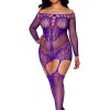 • Fishnet and decorative scalloped lace garter dress with attached fishnet stockings