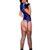 • Stretch mesh garter slip police bedroom costume • Faux leather collar • Zip front • Police badge and ID patch details • Attached garters • Matching G-string included • Novelty handcuffs included • Stockings not included