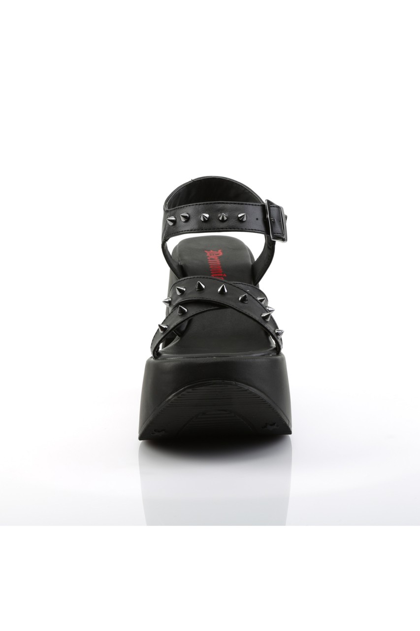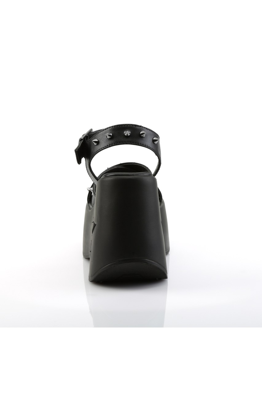 5″” (12.7cm) Star Cutout Platform Wedge Criss Cross Ankle Strap Sandal with Cone Spike Detail