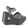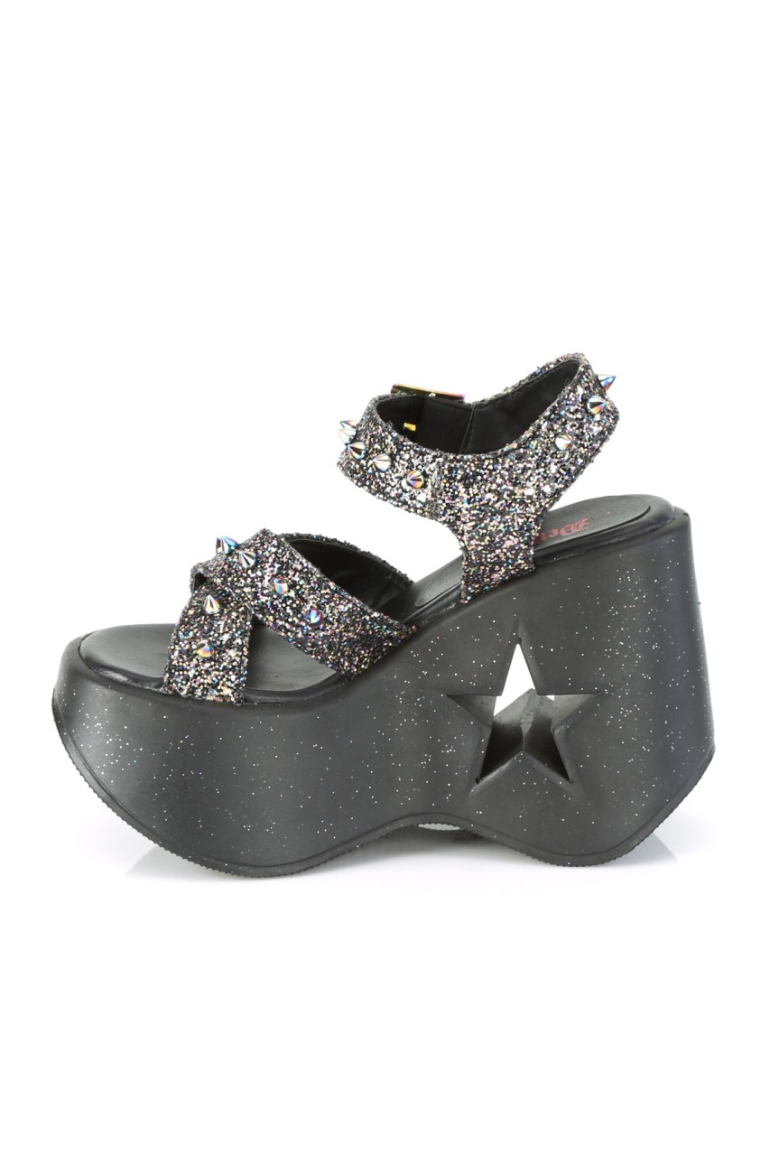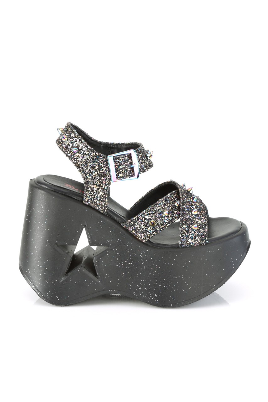 5″” (127mm) Star Cutout Ankle Criss Cross Strap Platform Wedge Sandal Featuring Spike Studded Straps