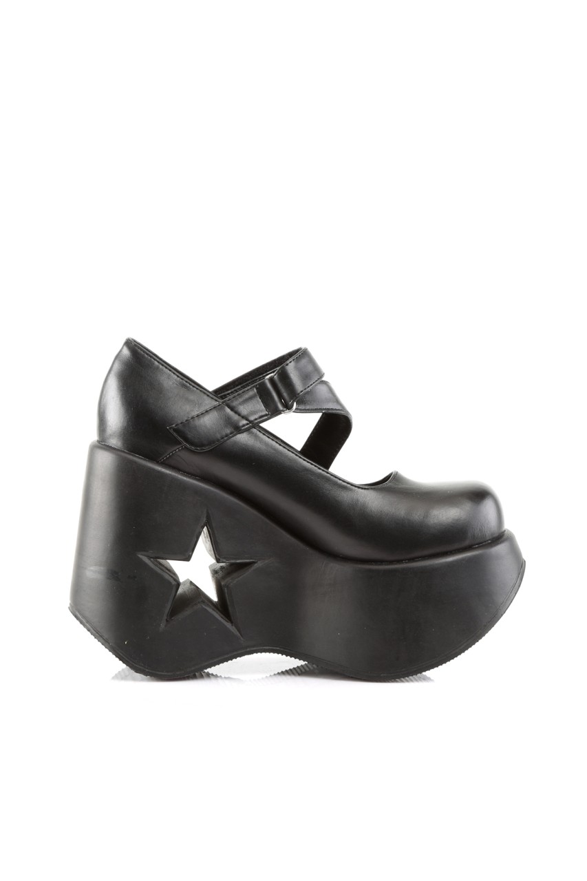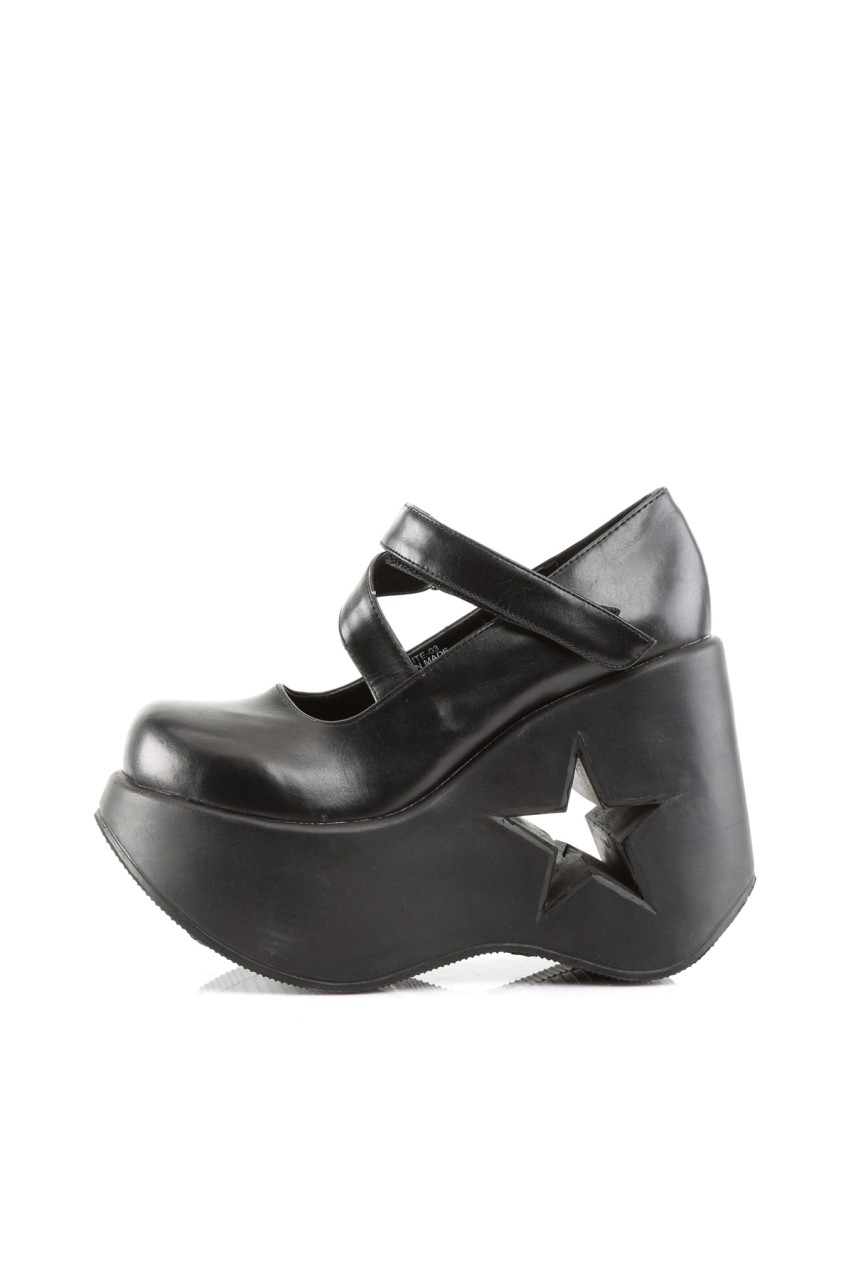 5 1/4″” (13.3cm) Wedge Heel with Star Cutout, Goth Punk Lolita Mary Jane Sandal