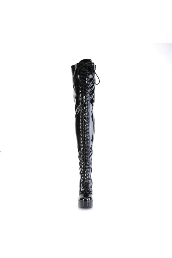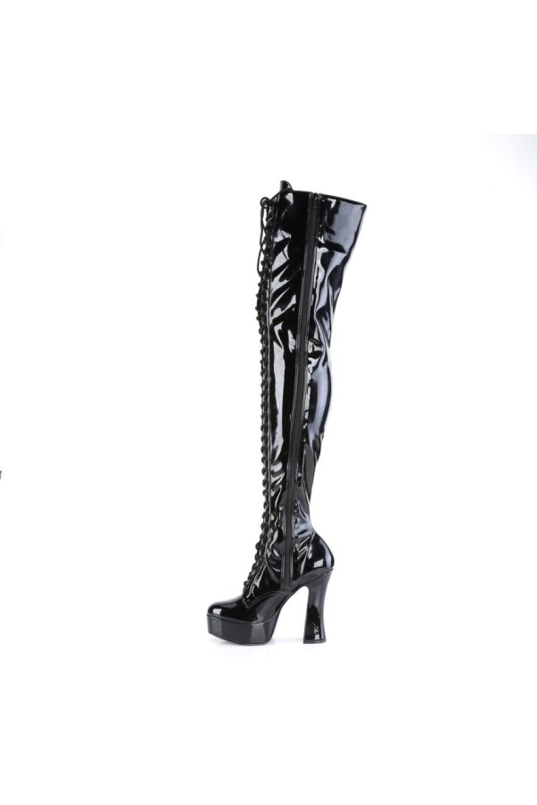 5″” (127mm) Heel, 1 1/2″” (38mm) Platform Lace-Up Front Stretch Thigh High Boot, Full-Length Inner Side Zip Closure