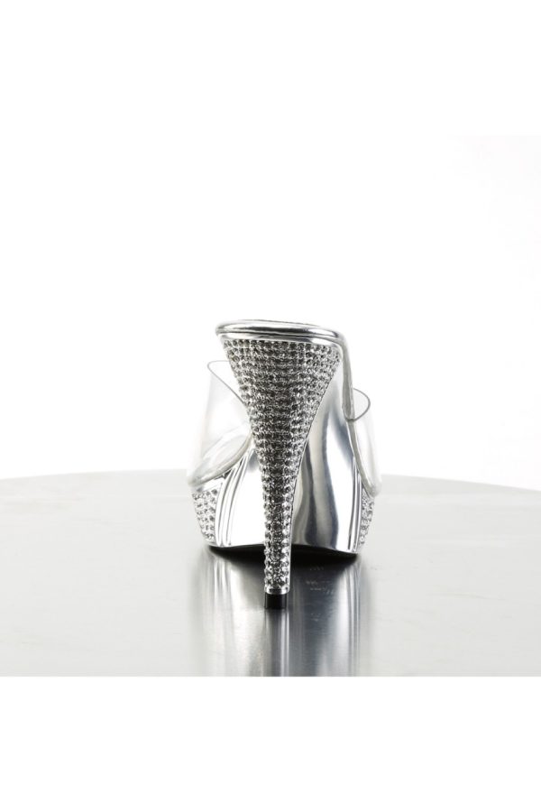 4 1/2″” (11.4cm) Heel, 1″” (2.5cm) Platform Slide Featuring Rhinestone Embellished Heel and Platform