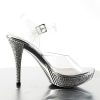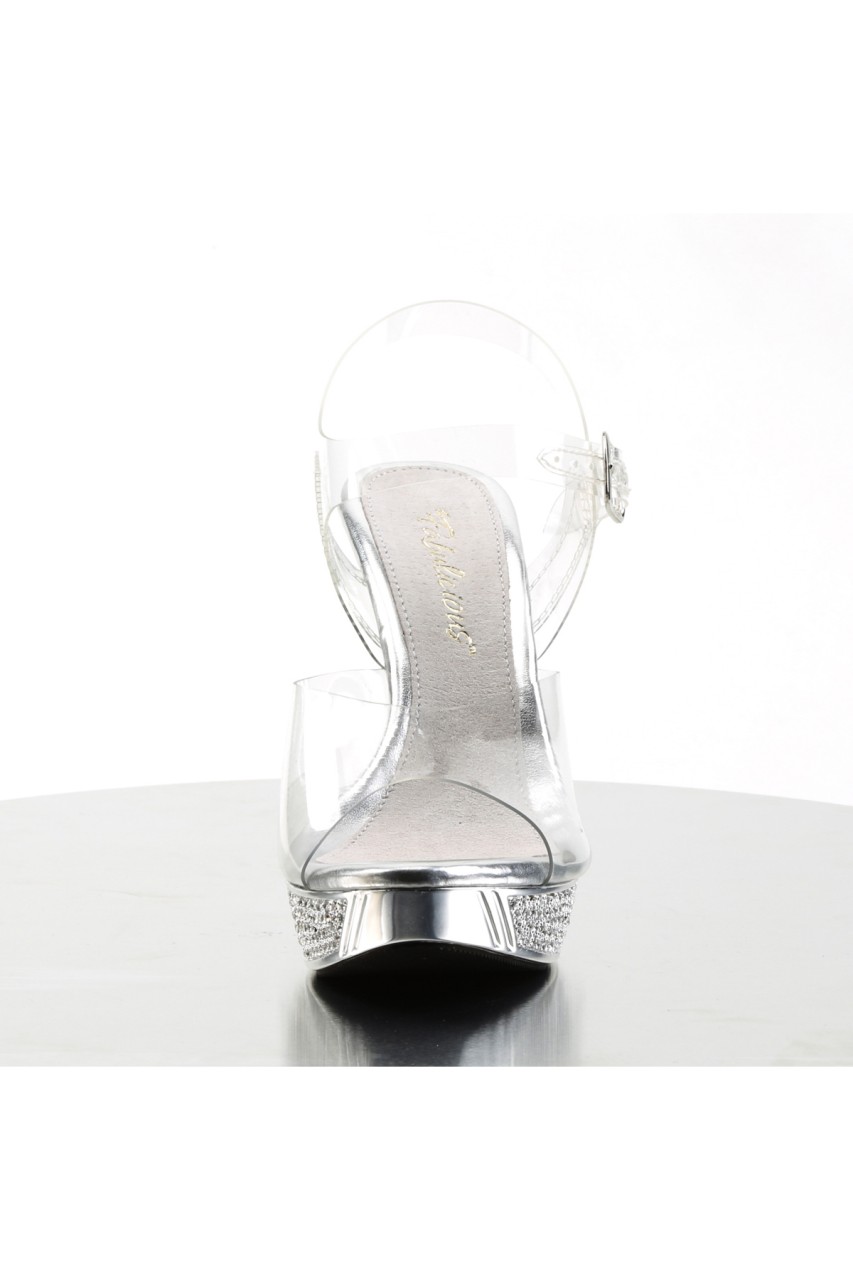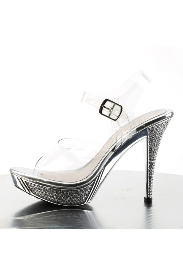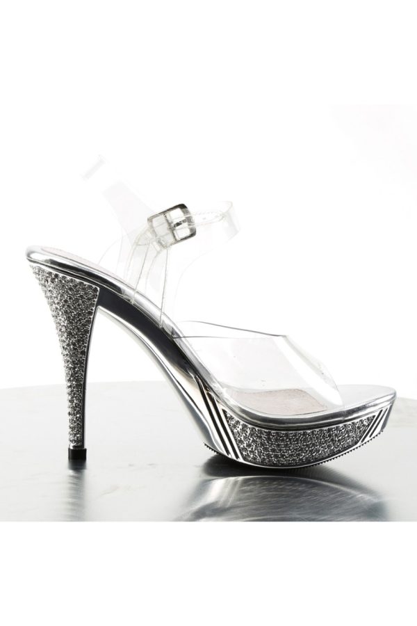 4 1/2″” (11.4cm) Heel, 1″” (2.5cm) Platform Ankle Strap Sandal Featuring Rhinestone Embellished Heel and Platform