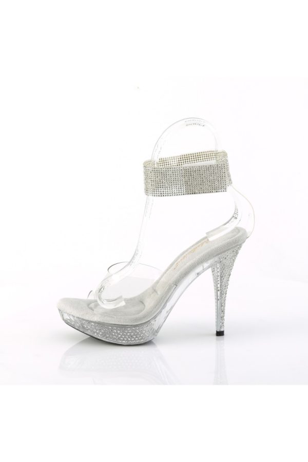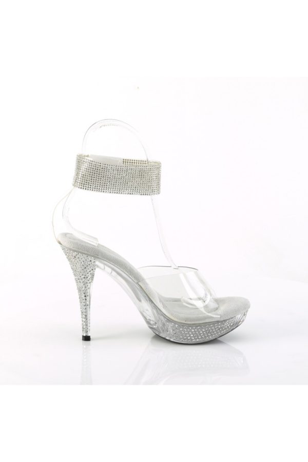 4 1/2″” (114mm) Heel, 1″” (25mm) Platform Sandal w/Rhinestone Ankle Cuff Featuring Rhinestone Embellished Heel and Platform