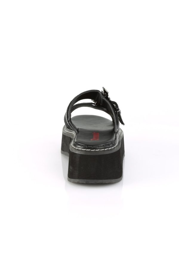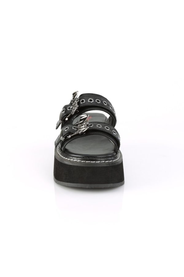 2″” Platform Double Strap Slide Sandal Featuring Riveted Straps and Ornamental Bat Buckles