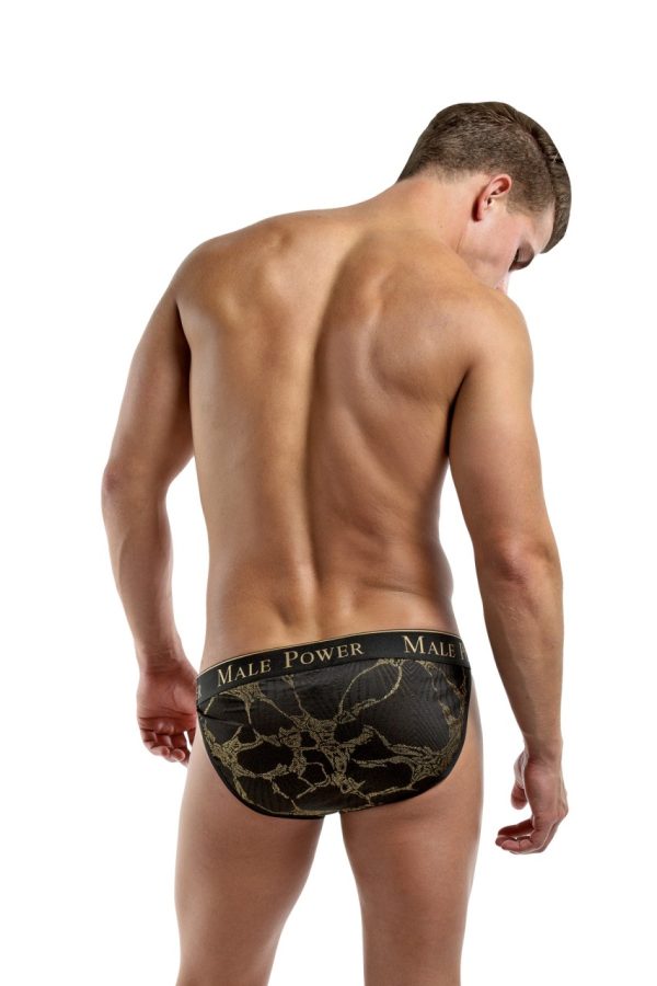 Low rise waist, support pouch offset by small side panels, color coordinating branding on plush elastic waistband Full rear coverage.