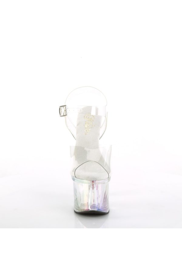 7″” (178mm) Heel, 3″” (76mm) Plarform Ankle Strap Sandal Featuring Clr Holographic Platform Bottom