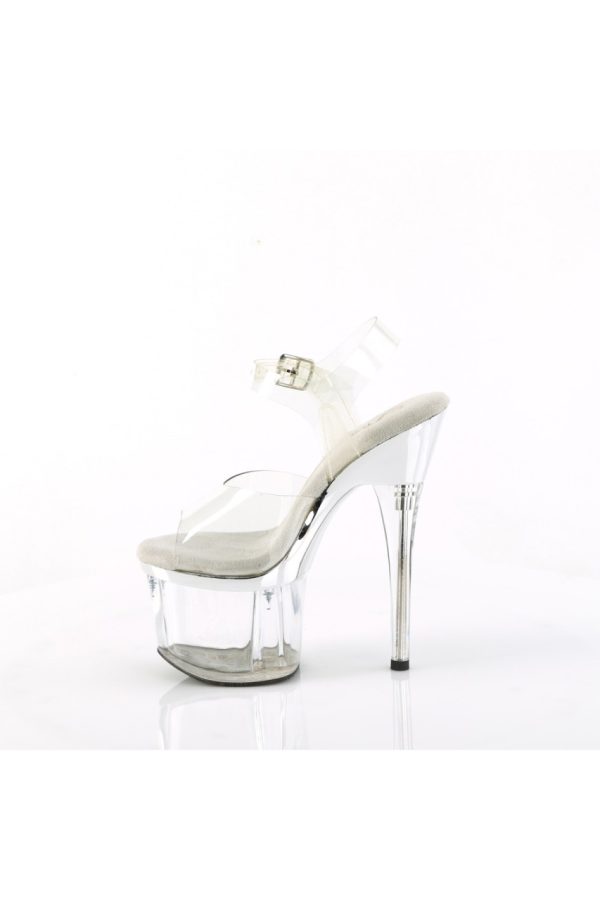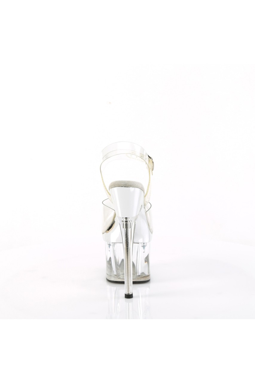 7″” (178mm) Heel, 3″” (76mm) Platform Ankle Strap Sandal w/Chrome Plated Upper Platform