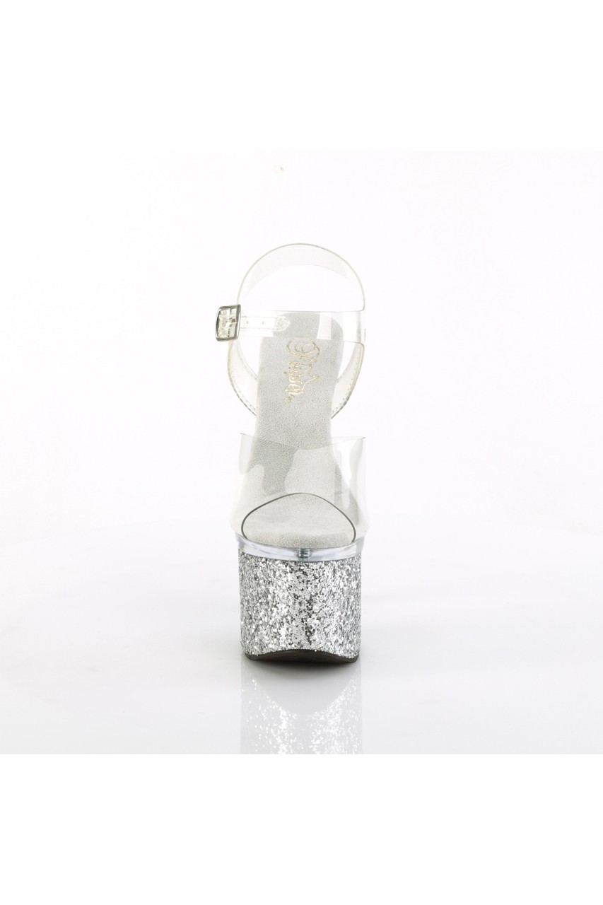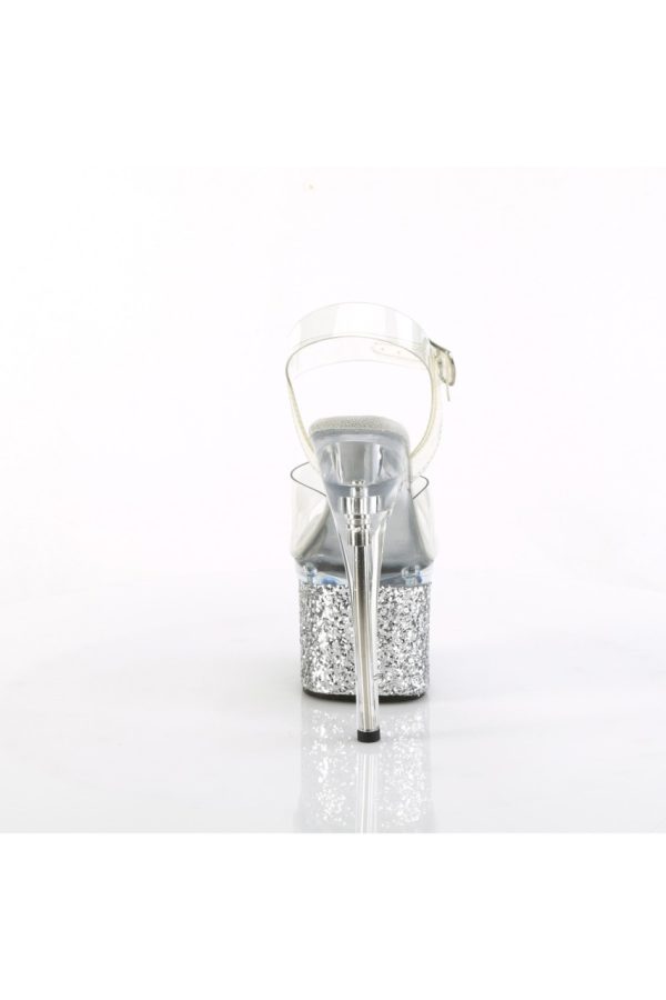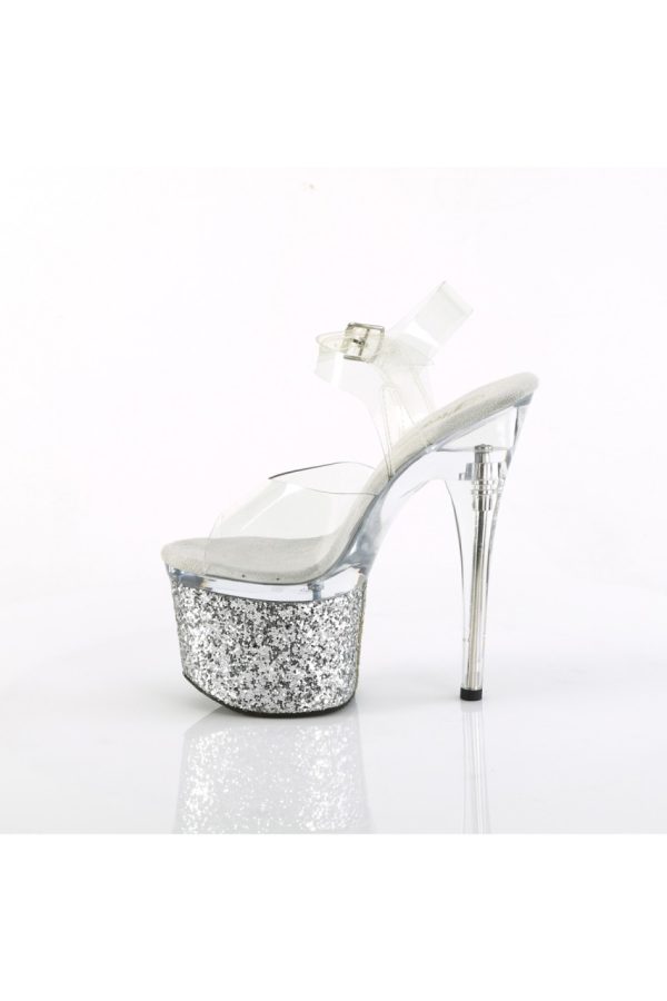7″” (178mm) Heel, 3″” (76mm) Platform Ankle Strap Sandal Featuring Iridescent Glitters Wrapped Lower Platform