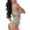 From the Exposed by Magic Silk collection, this style includes: a floral mesh bralette featuring lace trimmed cups and shoulder straps, elastic and adjustable with gold tone sliders, hook & eye closures in the back, a matching floral mesh waist cincher with lace trims, hook & eye closures in the back, and attached elastic and adjusable garter straps with gold tone sliders, and a matching floral mesh and lace cheeky panty. Hand Wash Cold. No Bleach. Dry Flat. Lace: 83% Nylon / 17% Spandex Mesh: 90% Nylon / 10% Spandex