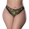 From the Exposed by Magic Silk collection, this style includes: A crotchless panty featuring blacklight reactive rainbow mushroom print, purl edges and an open back. Hand Wash Cold. No Bleach. Dry Flat. 89% Polyester / 11% Spandex