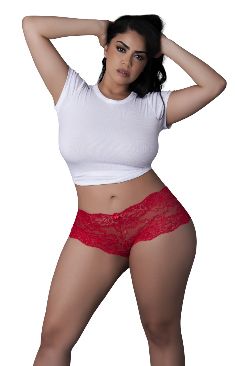 From the Sugar High collection by Magic Silk, this style includes: a lace boy short with scalloped edges and satin bow.