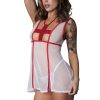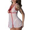 From the Dress Up collection by Magic Silk, this style includes: A mini dress with a flirty hem with slits, contrast bindings and a playful cross across the bust, and G-string.