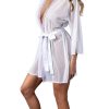 From the Exposed by Magic Silk collection, this style includes: A flowy mesh robe featuring lace trimming and a satin tie belt. Sheer stretch mesh fabric paired with delicate scalloped lace trim and soft, silky satin bindings. Hand Wash Cold. No Bleach. Dry Flat. 85% Nylon / 15% Spandex