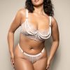 Iridescent metallic embroidered bra with iridescent pearl draped underwire cups, adjustable lurex elastic and matching pearl panty