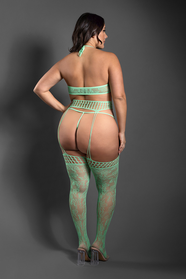 Plus size black sleeveless bodystocking dress. Items arrives packaged. Please note thong is not included.