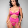Natali is a beautiful floral embroidered bra. Lovely lace up detail to the centre of the bust. Matching brief thong and suspender belt sold separately. Available in pink (black version also available). Item arrives packaged in its own Roza box.