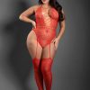 Fantasy Lingerie – SECRET RENDEZVOUS Crotchless halter tie teddy bodystocking and fingerless gloves – FL-SF1004