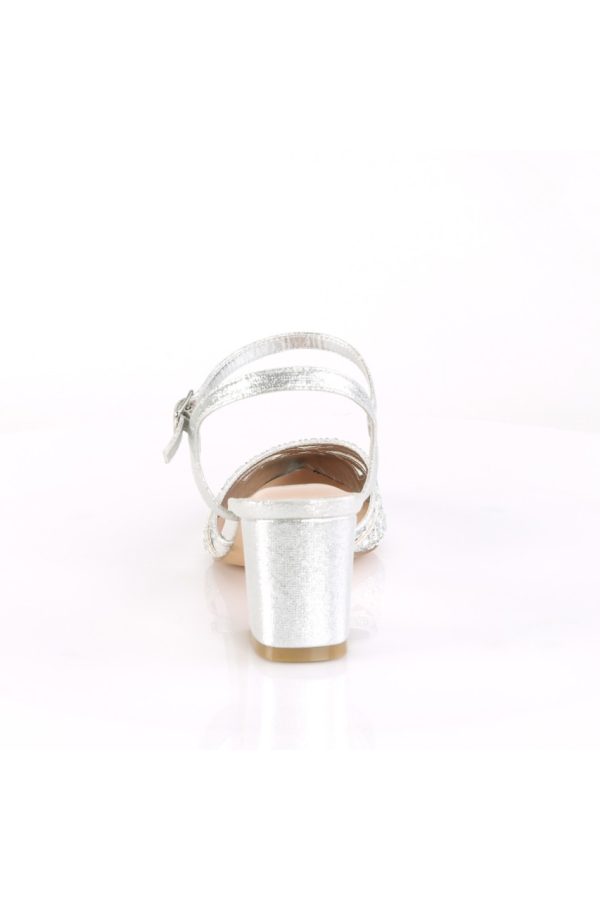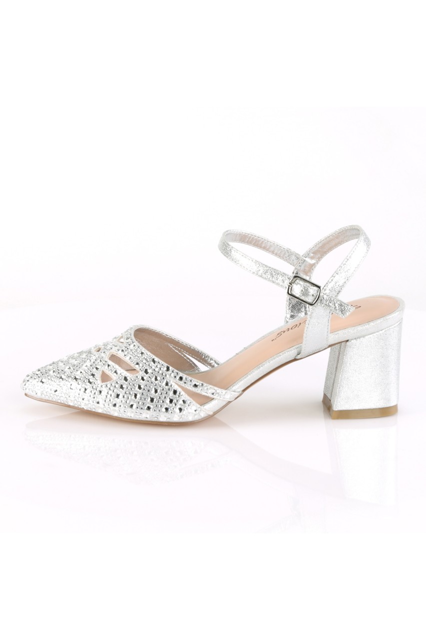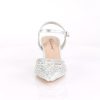 2 3/4″” (70mm) Block Heel Pointed Toe Open Back Ankle Strap Pump w/ Rhinestone Studded Vamp