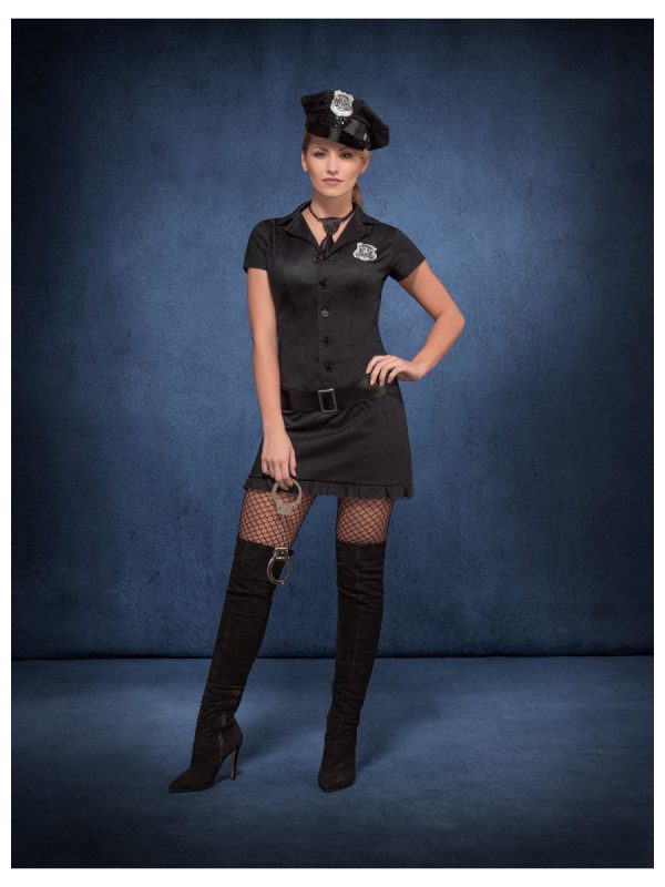 Fever Naughty Cop, Black, with Dress, Tie, Hat & Belt