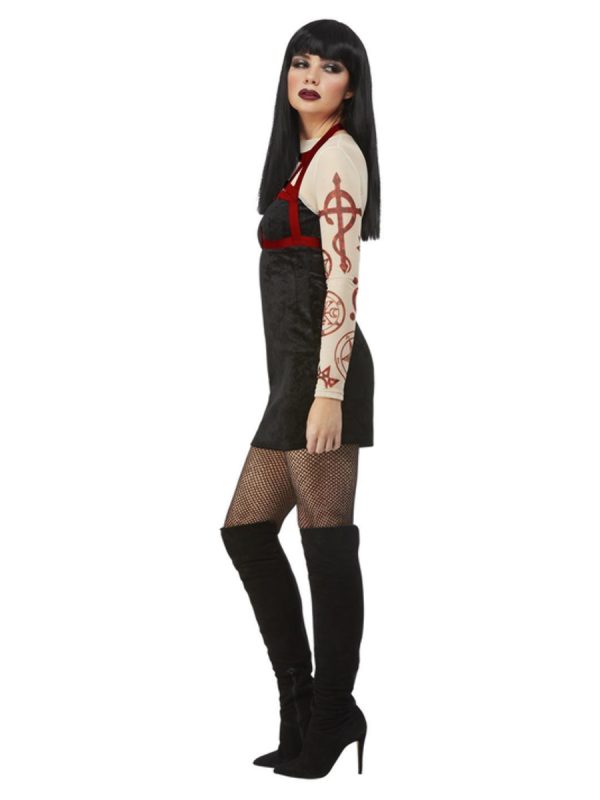 Fever Satanic Witch Costume, Black, Dress, Hat & Shoulder Harness