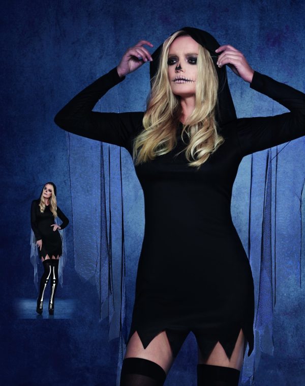 Fever Sexy Reaper Costume, Black, with Short Hooded Dress