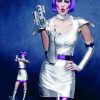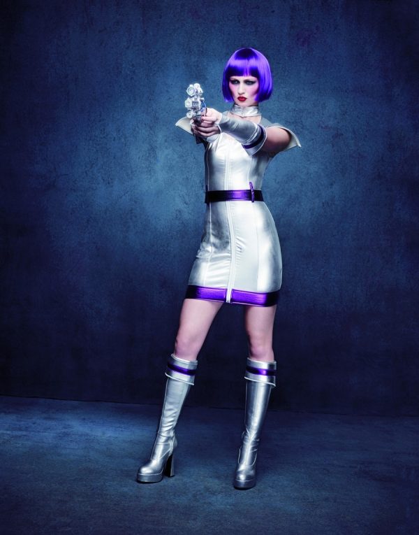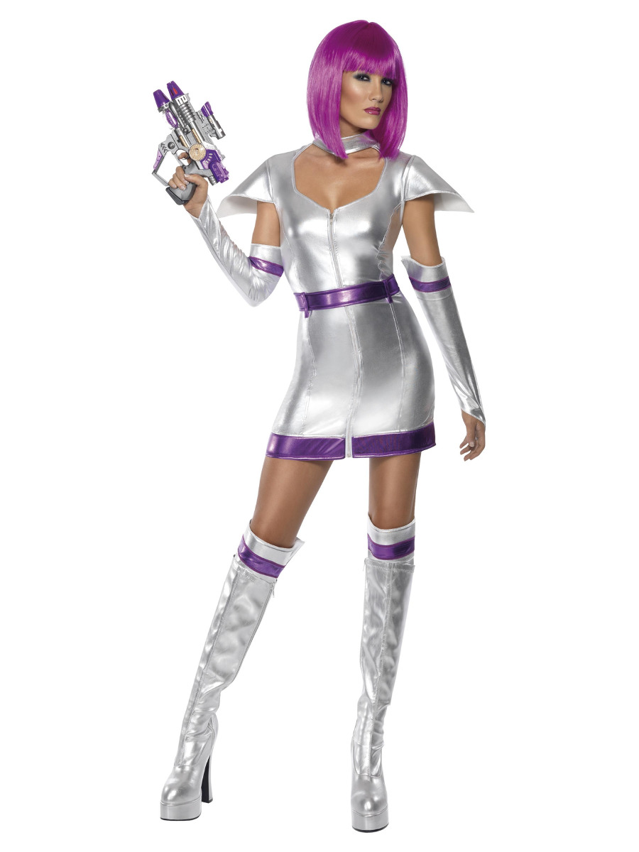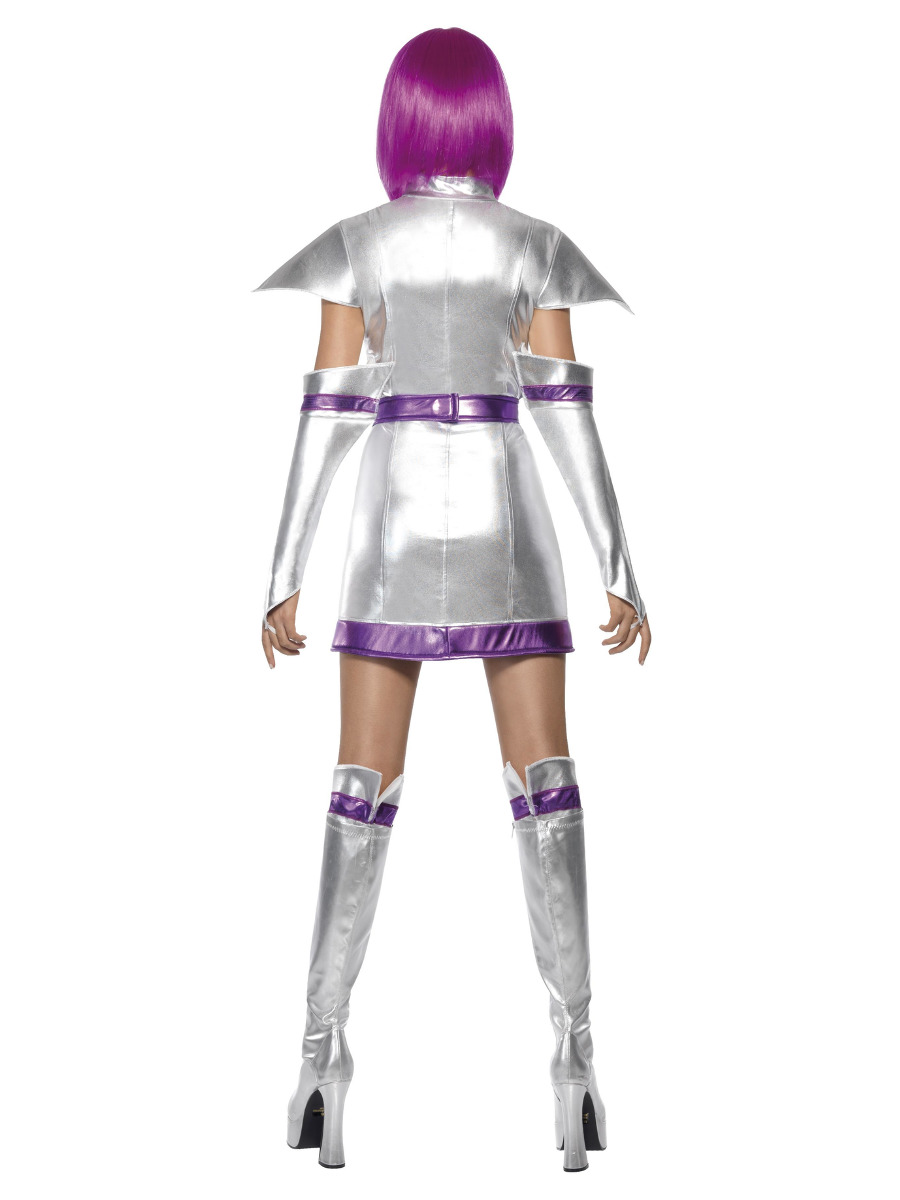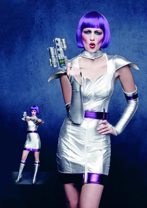 Fever Space Cadet Costume, Silver Metallic, with Dress, Belt, Arm Cuffs & Boot Cuffs