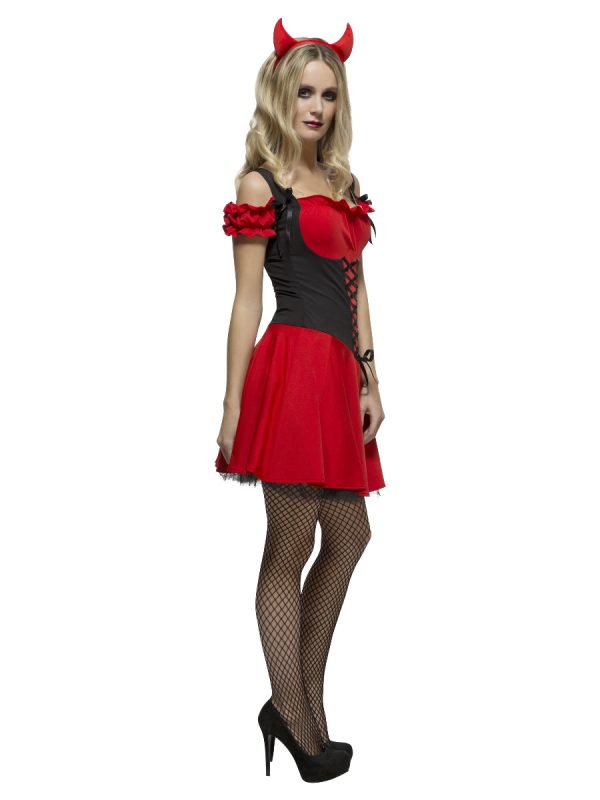 Fever Wicked Devil Costume, Red, with Dress, Attached Underskirt & Horns