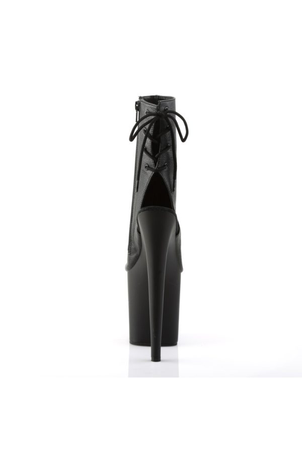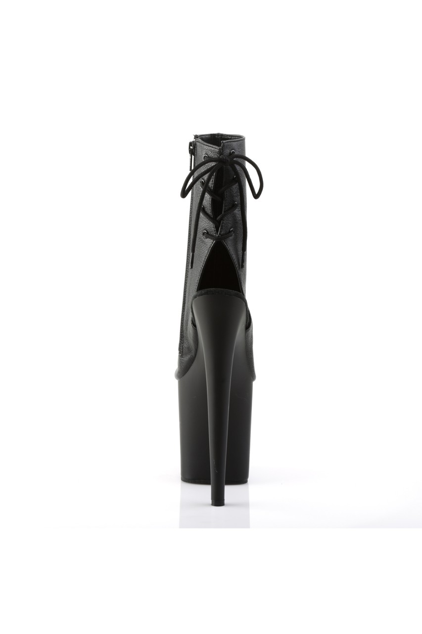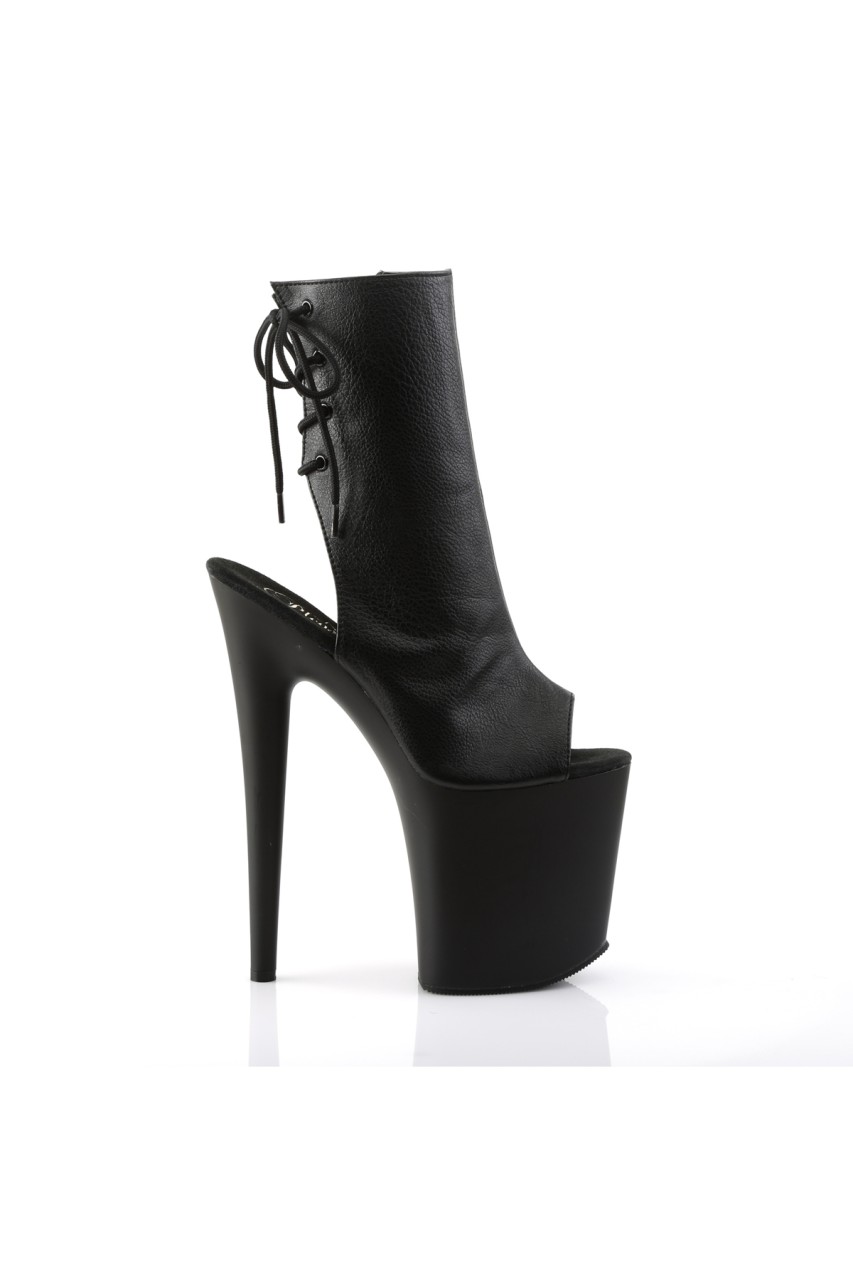 8″” (20.3cm) Stiletto Heel, 4″” (10.2cm) Platform Open Toe/Heel Back Lace-Up Ankle Boot, Inner Side Zip Closure