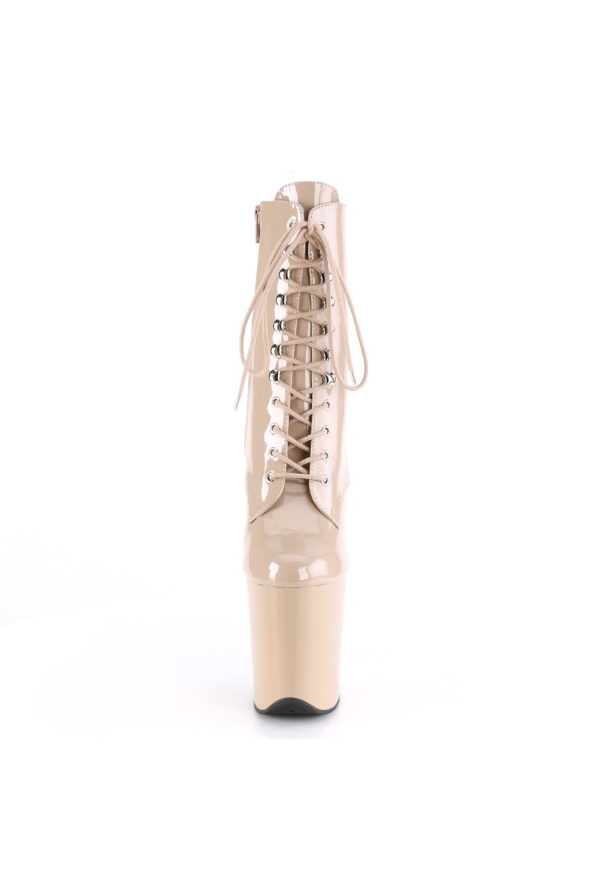 8″” (200mm) Heel, 4″” (100mm) Platform Lace-up Front Ankle Boot, Inner Side Zip Closure
