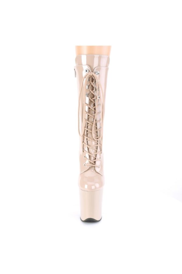 8″” (200mm) Heel, 4″” (100mm) Platform Lace-Up Front Mid Calf Boot, Inner Side Zip Closure