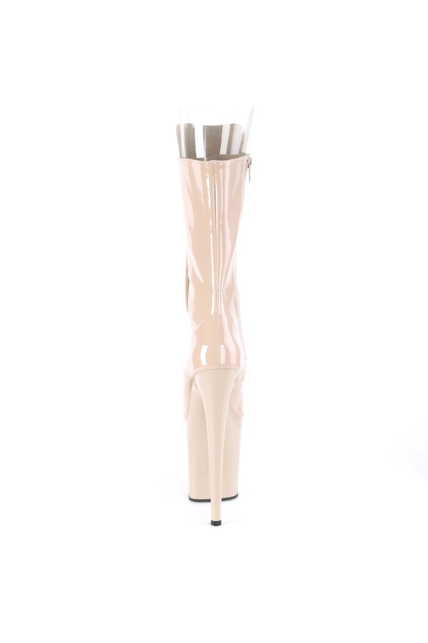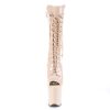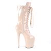 8″” (200mm) Heel, 4″” (100mm) Platform Peep Toe Lace-Up Front Mid Calf Boot, Inner Side Zip Closure