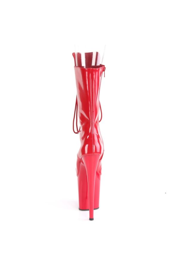 8″” (200mm) Heel, 4″” (100mm) Platform Peep Toe Lace-Up Front Mid Calf Boot, Inner Side Zip Closure