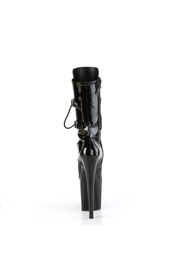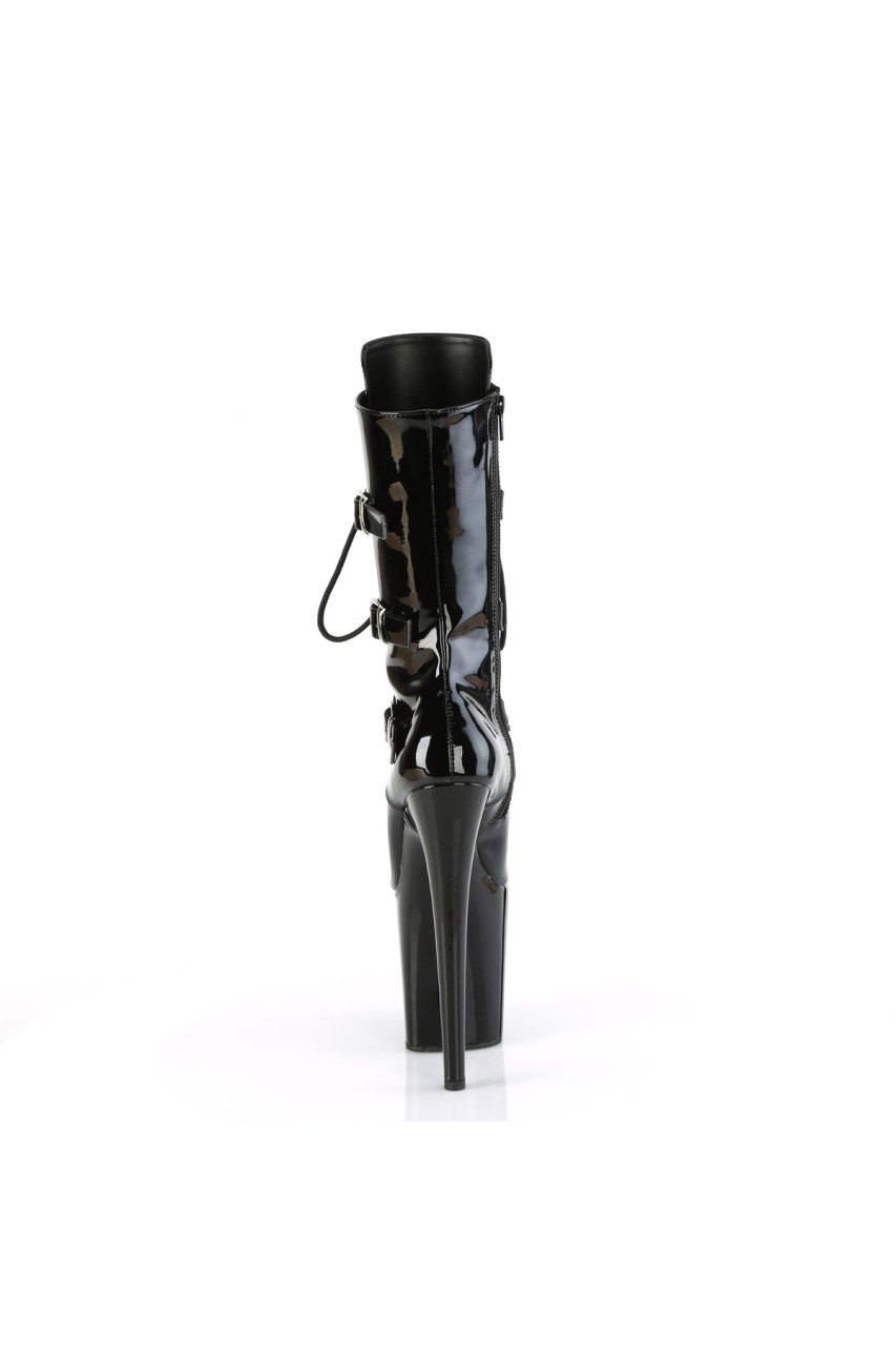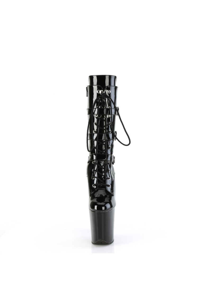 8″” (200mm) Heel, 4″” (100mm) Platform Lace-up Front Triple Buckle Strap Mid-Calf Boot, Inner Side Zip Closure