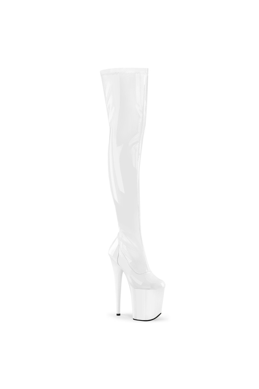 8″” (200mm) Heel, 4″” (100mm) Platform Stretch Thigh High Boot, Full-Length Inner Side Zip Closure