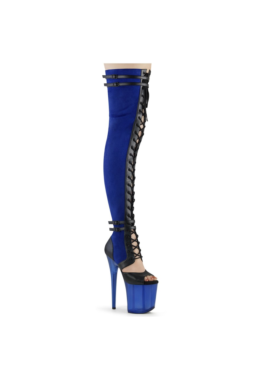 Blue Faux Suede-Blk Faux Leather/Frosted