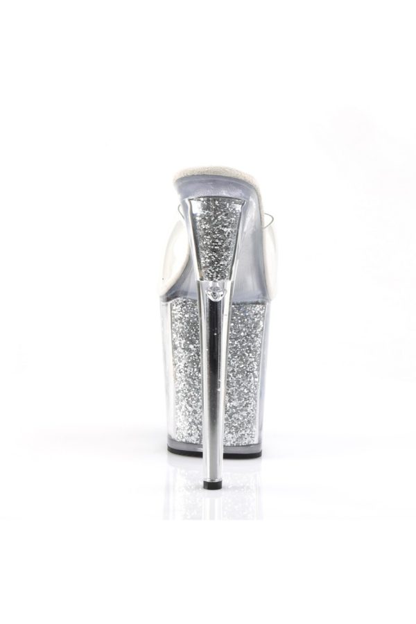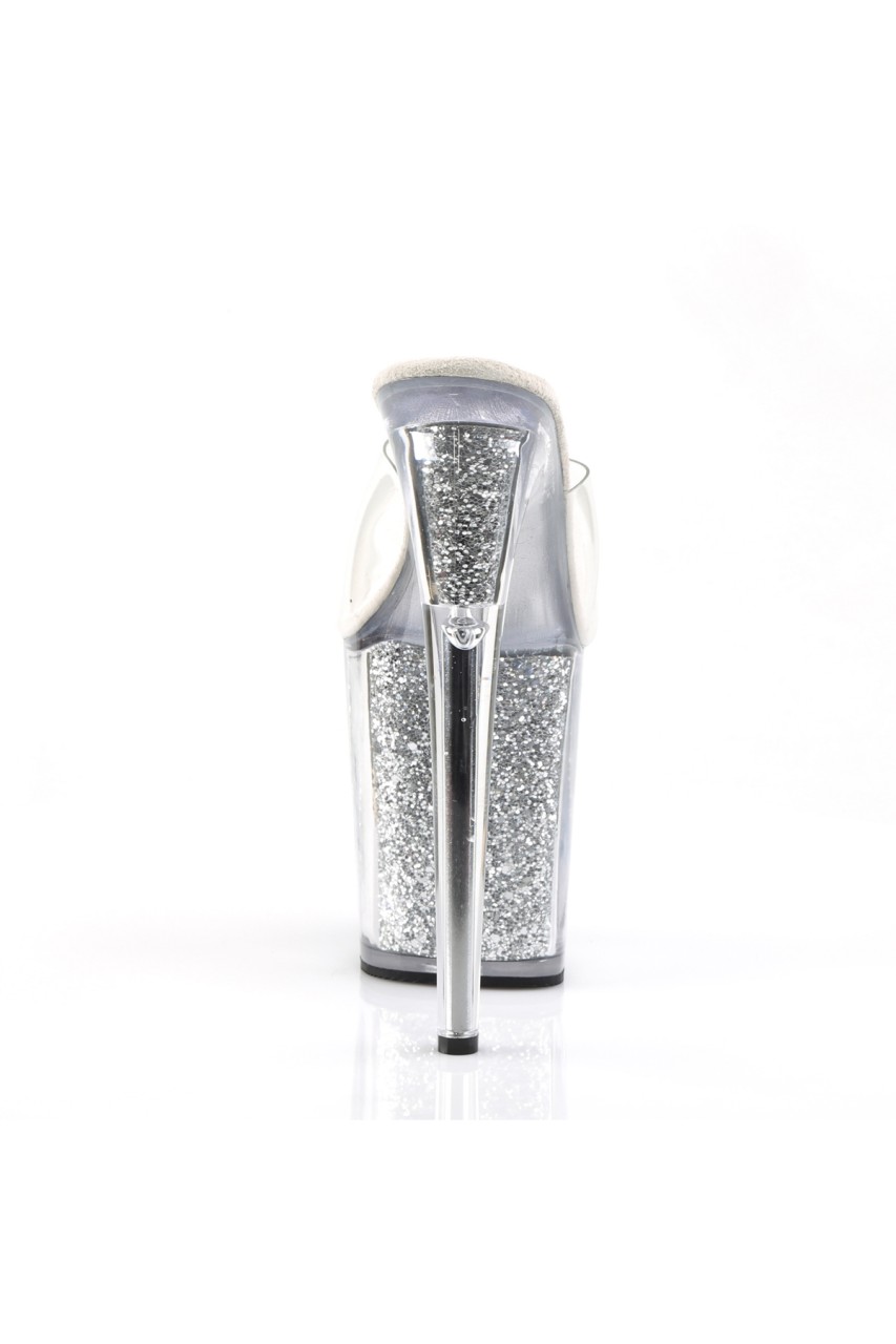 8″” (20.3cm) Stiletto Heel, 4″” (10.2cm) Platform Slide Featuring Glitter-filled Platform