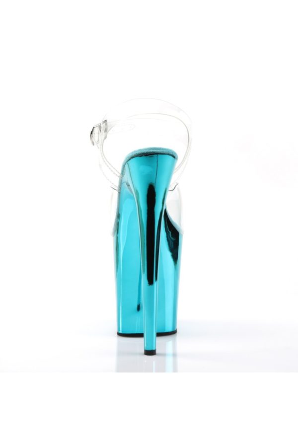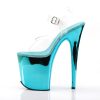 8″” (20.3cm) Stiletto Heel, 4″” (10.2cm) Platform Ankle Strap Sandal with Chrome Plated Bottom, Turquoise Chrome
